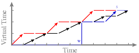 -- When process i wakes up, VT_i = max(VT_i, min_{j!=i} VT_j)